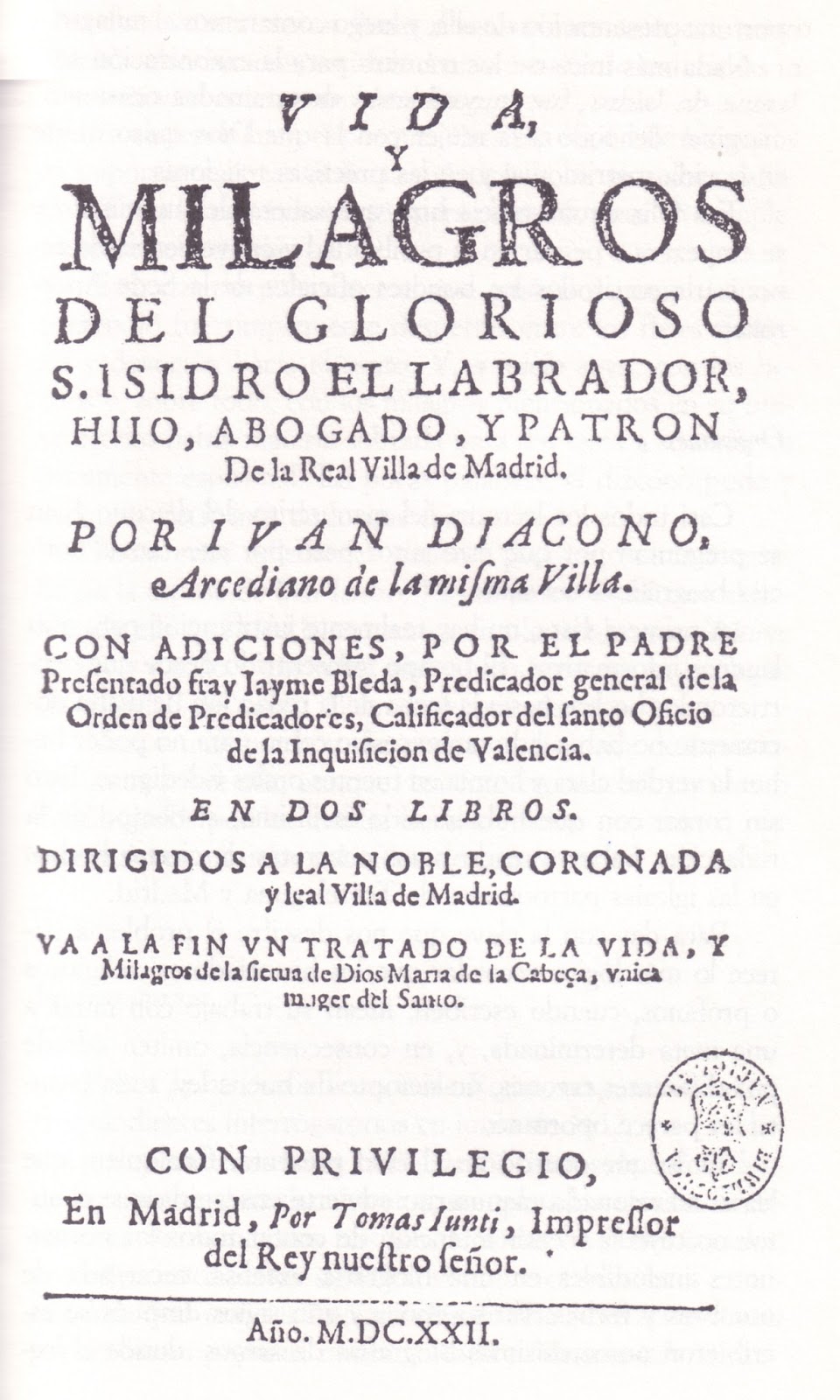 labrador, hijo, abogado y patrón de la Real Villa de Madrid. Madrid, 1622.